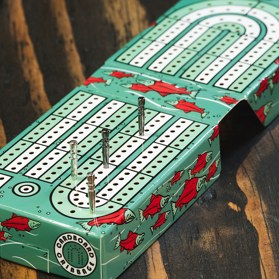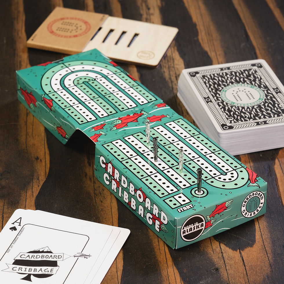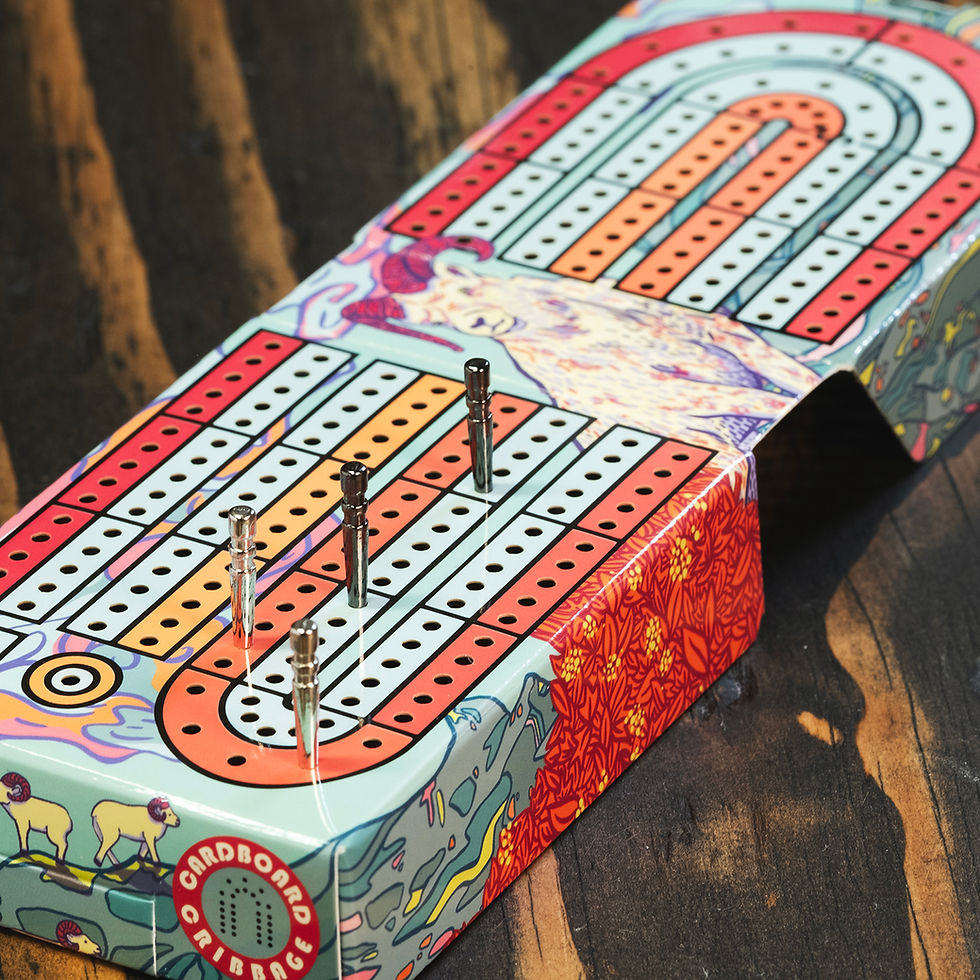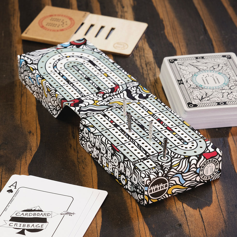 Discover our unique travel cribbage sets where your card box IS the board. These ultralight and durable boards are made in Alaska and include original art, making them the perfect game for any journey.